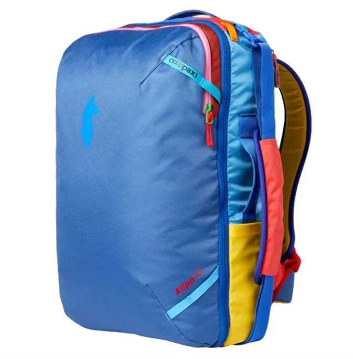 An expanded size of our signature adventure travel pack, the Allpa 42L Travel Pack protects and comfortably carries all your worldly possessions, whether you’re headed across the ocean, across state lines, or across the street. Identical to our standard Allpa 42L Travel Pack in features and function, this version is different in its use of repurposed fabrics. We use high-quality, synthetic fabrics left over from other companies large production runs to create every Allpa Del Dia, making each pack one of a kind and uniquely sustainable. The Allpa 42L features a suitcase style, zippered opening and inside, we divvied up the pack with various sizes of zippered mesh pockets to keep clothing, travel documents, toiletries, and other essentials neatly organized when you’re in transit. We also added a padded sleeve for your laptop or tablet, a top zip pocket for quick-grab items, and an exterior shortcut pocket that provides access to the main compartment when you don’t want to fully open the bag. Four reinforced handles let you grab, pull, and pitch from any angle, and the pack’s carabiner lash points let you strap on extra gear. Each pack in this collection is one-of-a-kind. We’ll choose a pack for you at random. Be prepared for a total surprise! The Del DÃa Collection – One-of-a-kind. 100% repurposed fabric. Uniquely yours. Del DÃa bags are made in the Philippines using fabric left over from other companies’ production runs. This helps keep good material out of the landfill, and puts it into the hands of thoughtful adventurers like you. Using repurposed fabrics means that every Del DÃa pack’s colors are one-of-a-kind. Please Note: Colour/s will vary from the image shown above