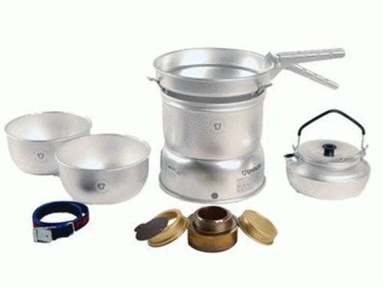 Ideal for the lone walker or two people. The 27 series is a small, compact stove that takes up very little room in your pack but has everything you need to be camp chef. Series 27 offers good stoves for the lone walker or two people. The pans are smaller and the kettle is sized accordingly. A small, compact stove that takes up minimal room in the rucksack. Here too, large billies can be placed on the raised supports in the upper windshield. All the stove systems in the 27 series have two 1-litre saucepans (1 graduated, 1 ungraduated), an 18 cm frying pan, windshields (upper and lower), a burner, a pan grip and a strap. It consists of two 1-litre saucepans (1 graduated, 1 ungraduated), an 18cm frying pan, upper and lower windshields, a burner, a pot grip and a strap and the 27-2 also come with bonus 0.6L kettle Made in Sweden and comes with Trangia guarantee.